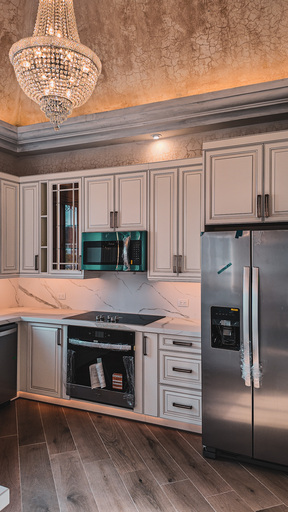 • Cocina con gabinetes y linea blanca