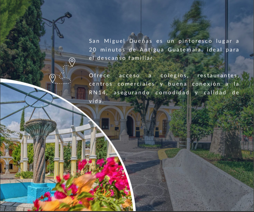 Ubicadas en San Miguel Dueñas, un encantador destino a solo 20 minutos de Antigua Guatemala, ideal para quienes buscan tranquilidad, aire puro y un ambiente perfecto para el descanso familiar. La zona ofrece cercanía a colegios, restaurantes, centros comerciales y una excelente conexión con la RN14, garantizando comodidad, practicidad y una calidad de vida excepcional.